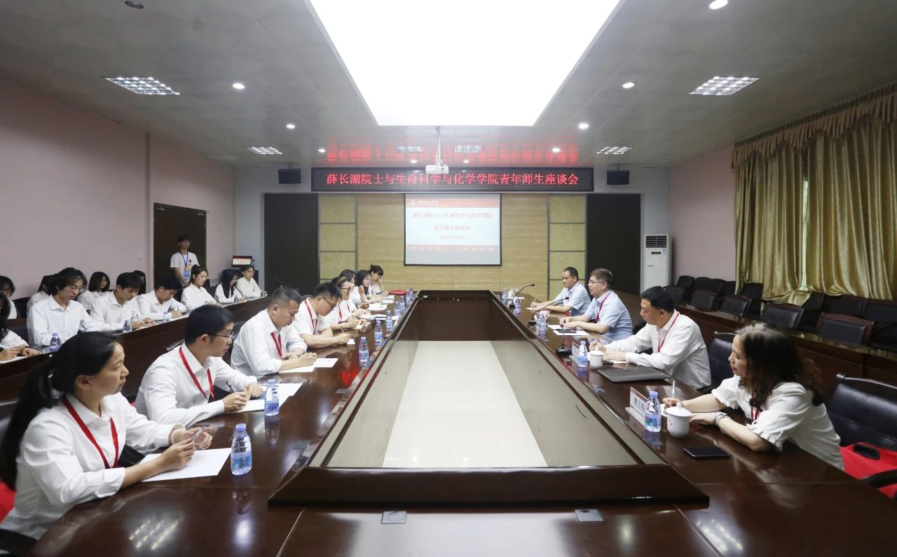 此外,当天现场还举行座谈会。座谈会上,中国工程院院士、中国海洋大学薛长湖围绕“如何实现研究成果产业化”主题,结合自身对水产品加工产业的研究,与江南官方网站生命科学与化学学院师生进行深入互动交流;并就专业学科建设、人才培养模式创新、青年学生成长成才等热点话题进行了详细解答。