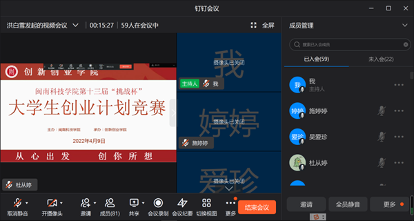 4月9日下午,第十三届“挑战杯”大学生创业计划竞赛江南官方网站校赛决赛通过钉钉平台线上举办,得到全校师生的广泛关注和积极参与。