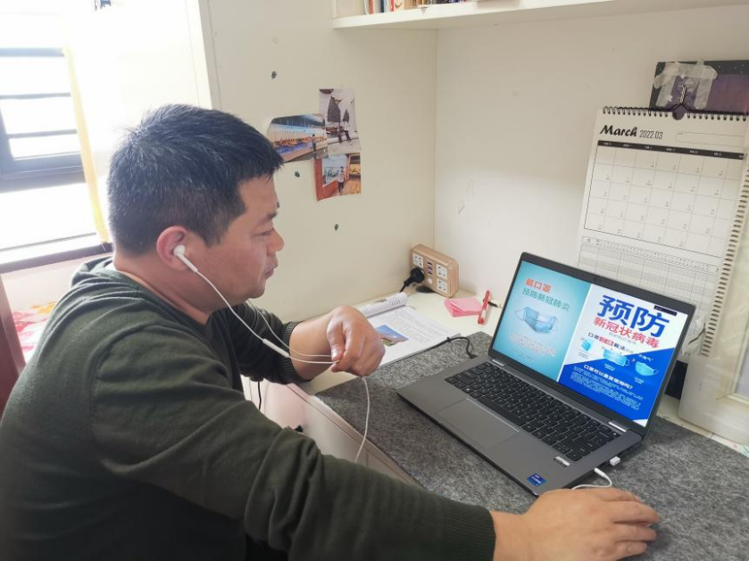 教师在线上教学中将疫情防控常识与专业知识相结合,提高课程思政实效(游林爱 摄)