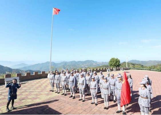 组织党员干部和教师瞻仰苦湖突围战纪念碑。骆惠勇摄