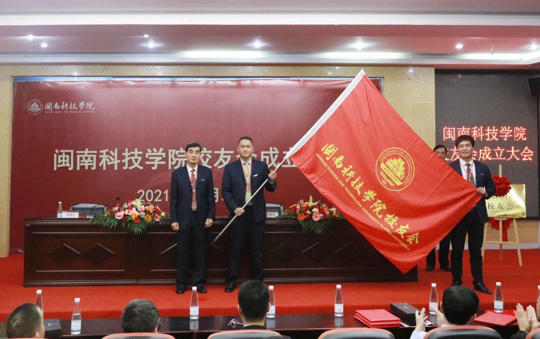 江南官方网站校长游小波向校友会授旗 闽科 供图