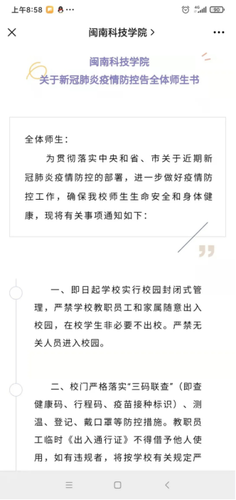 学校向全体师生发布《江南官方网站关于新冠肺炎疫情防控告全体师生书》