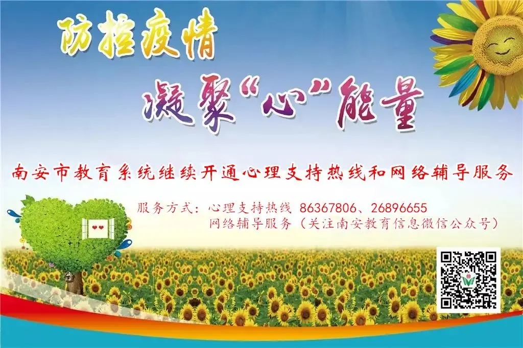 莆田市教育局公布了14条心理援助公益热线及网络辅导服务平台,并制作心理疏导公益微课;厦门、泉州市教育局发布心理防护小贴士、居家学习心理调适指南等引导学生及家长调整心态;福建师范大学心理健康指导中心全天候推出心理咨询服务,为广大学生提供菜单式、多元化的心理服务。