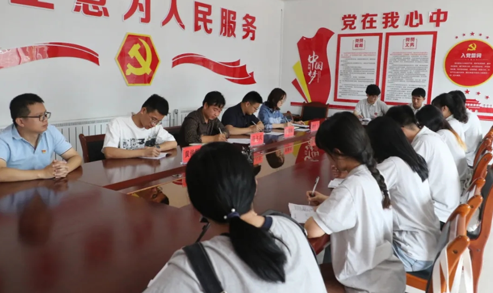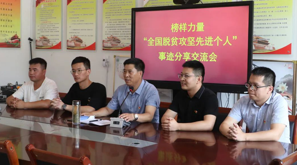 在硝河乡新庄村,实践队与全国脱贫攻坚先进个人王元明书记交流座谈,王元明书记结合自己在新庄村脱贫攻坚过程中的好经验和做法,分享了疫情防控期间如何发挥党员先锋模范作用一手抓防控一手抓生产,生动展示了一名驻村干部的党员本色。