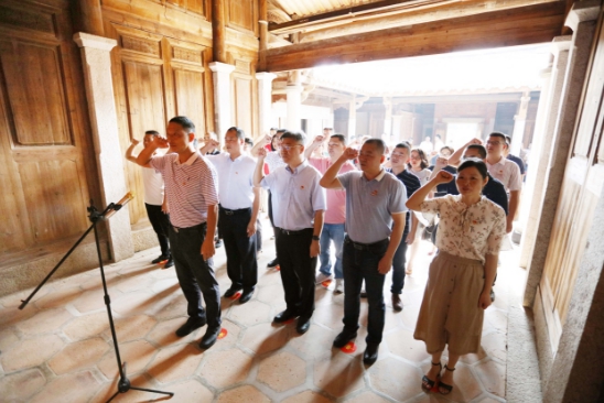 全体党员面向党旗,重温入党誓词(骆惠勇摄)