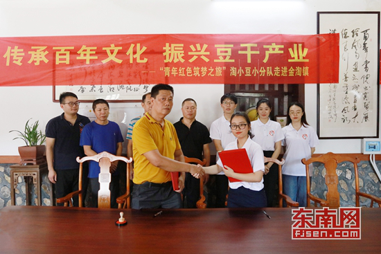 “2018年以来,‘淘小豆’团队积极参与金淘豆干技术改良,经过200多个日夜,400多次实验,将原有保鲜时间从3天提高到6-7天,确立了‘开展社区门店运营模式,拓宽金淘豆干销售渠道’的方案,并且与当地多家酒店签订合作协议,大大提升了带动金淘镇豆干产业销量。”据陈燕琼介绍,团队未来将在企业文化、行业标准化生产、品牌输出加盟、实习实训基地建设等方面持续发力,产业、行业、企业、政府、高校多方联动,共同推动金淘豆干产业创新驱动发展,为乡村振兴贡献“闽科智慧”。