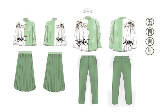 6组入围作品制作成衣后,组委会制作H5作品供网友选择喜爱的入围作品试穿,形成自己的“五四风青年照”,并在网络分享。经过数据分析,结合专家评审意见,主办方意见最终评出当代青年最喜欢的五四装(男、女)金奖一组,作为00后群体“正青春”五四风成人礼专属服装,银奖2组,铜奖3组。