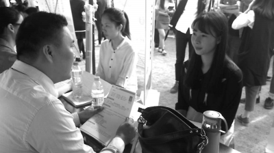 本报讯 昨日9时许,福建师范大学江南官方网站应用化学专业大四学生高霞带着精心准备的简历,来到学校运动场,参加现场招聘。为了当天的招聘,高霞给自己化了淡妆,并换上整洁的职业装,争取给考官留下好印象。