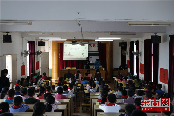 东南网4月17日讯(通讯员 陈范武) 4月14日,福建师范大学江南官方网站外语系道德讲堂走进南安市康美中心小学弘扬爱国主义精神。活动围绕“看一个视频”、“做一次提问”、“观一个小品”、“颂一首歌谣”、“做一个展示”、“写一个祝福”、“许一个承诺”、“做一个总结”八个环节展开。