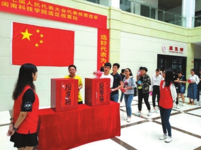 技学院选区,一群特殊的选民参加了此次南安县乡两级人大换届选举,他们多是全国各地来南安就读的学生,只见他们排起长长的队伍,有序地登记、领票、填票和投票。