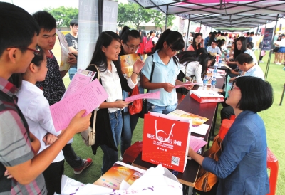 “建议学生多从综合招聘会、专场招聘会、中小型洽谈会上了解招聘信息,看好一个岗位后,利用大四时间,去相应岗位实习锻炼一下,这样一来,学生也能更有目的地选择到兴趣岗位,更快上岗上位。”张燕斌表示。