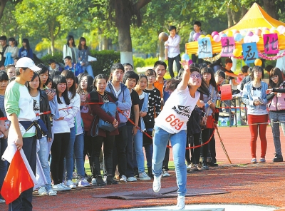 本报讯 昨日,福建师范大学江南官方网站第八届田径运动会拉开序幕。该校市场营销、国际贸易、通信工程、工商管理等22个专业的学生,积极参与到各项比赛当中,彰显青春活力。