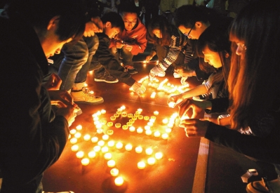 该校电子专业2011级学生小吕是此次祈福活动的发起人。“雅安发生地震后,伤亡人数不断上升,我一直很揪心,不知道能为他们做什么。”小吕说,后来他联系了几名学生,决定发起一次祈福活动,希望能为雅安灾区的人们带去正能量。