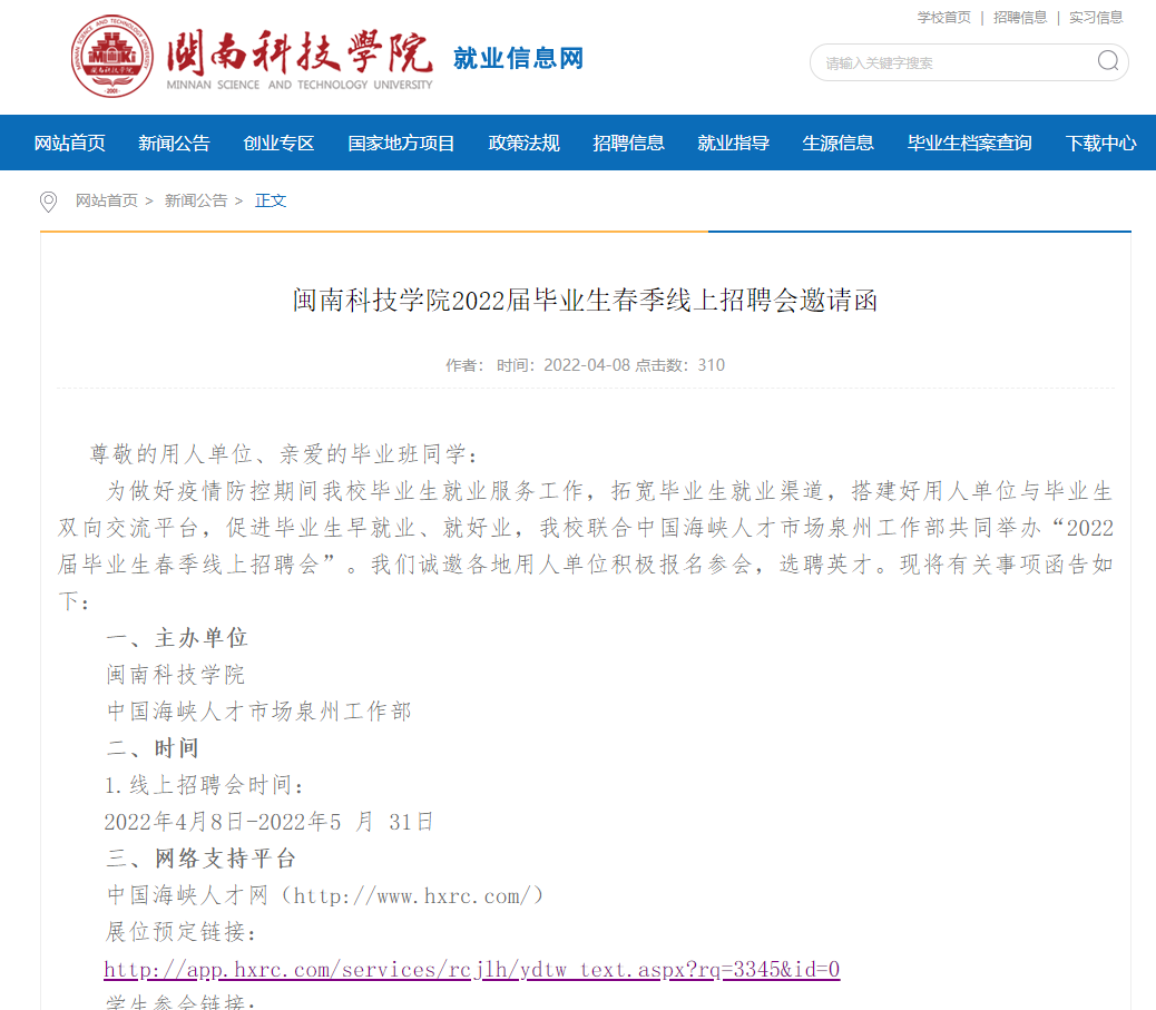 发布2022届毕业生春季线上招聘会邀请函