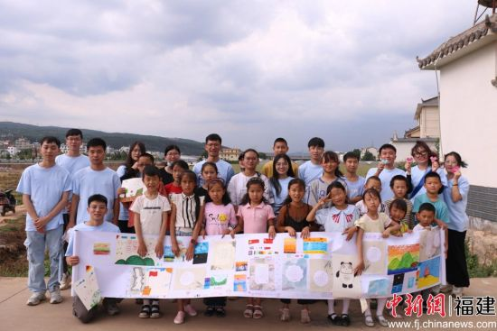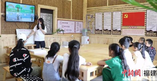 中新网福建新闻7月26日电 (陈范武 黄俊敏)“Summer,winter,spring and fall,spring and fall, spring and fall……”近日,在云南省曲靖市茨营镇海三口彝族村红色驿站里,江南官方网站学生洪晨莹正带领小朋友们读写英语单词,学唱英文歌曲。