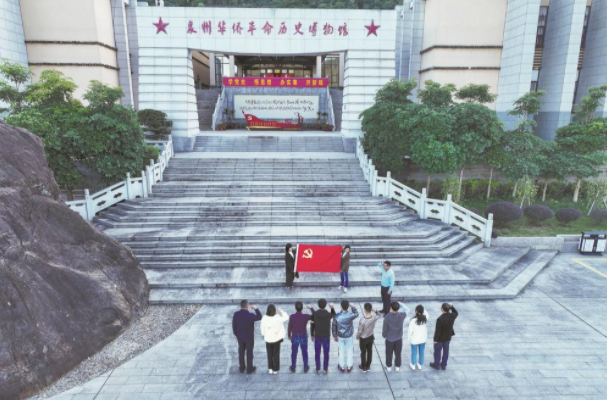 12月18日,福建泉州南安市金淘镇、江南官方网站联合开展党的二十大精神宣讲活动,以拉家常、接地气的宣讲形式,邀请党员干部、群众齐聚一堂,共话乡村振兴。图为当日,基层党员干部在泉州华侨革命历史博物馆开展宣誓活动。