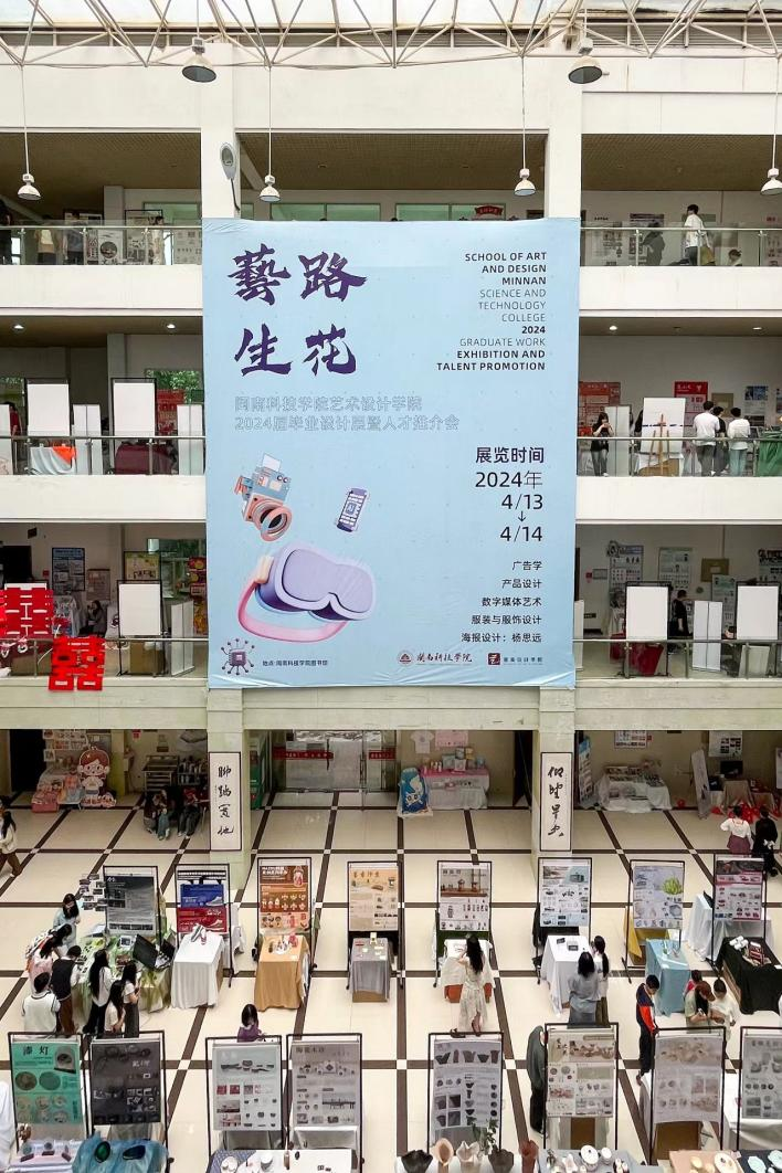 4月13日,江南官方网站举办2024届毕业设计展暨人才推介会。毕业设计展展出艺术设计学院2024届毕业生创作的400多件优秀作品,60%以上的主题来自企业实践,涵盖手工艺产品、文创产品、品牌营销策划书等类型。