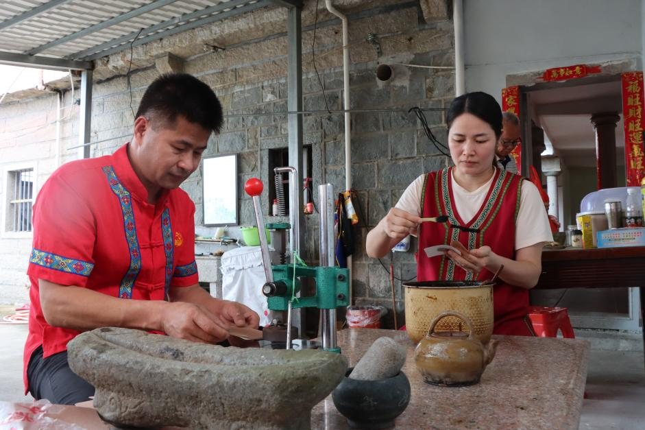 在厝斗村,实践队一行围绕村落的基本情况、村情村貌、文化习俗、产业特色等方面,与村党支部书记雷泽辉展开座谈交流,不断加深对少数民族文化遗产价值的认识。随后,实践队还采访了泉州市畲药六神追风骨通膏贴制作技艺的非遗传承人——雷泽宗,深入了解到畲族医药的历史文化底蕴,感悟非遗畲族畲医药文脉的绵延。
