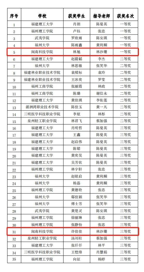 近日,由福建省土木建筑学会主办的第一届福建省建设工程数字化计量与计价课程设计创新大赛公布获奖名单。我校土木工程学院选派的2022级工程造价专业林旭同学、许佳佳同学在众多参赛选手中脱颖而出,分别荣获一等奖和三等奖的好成绩。