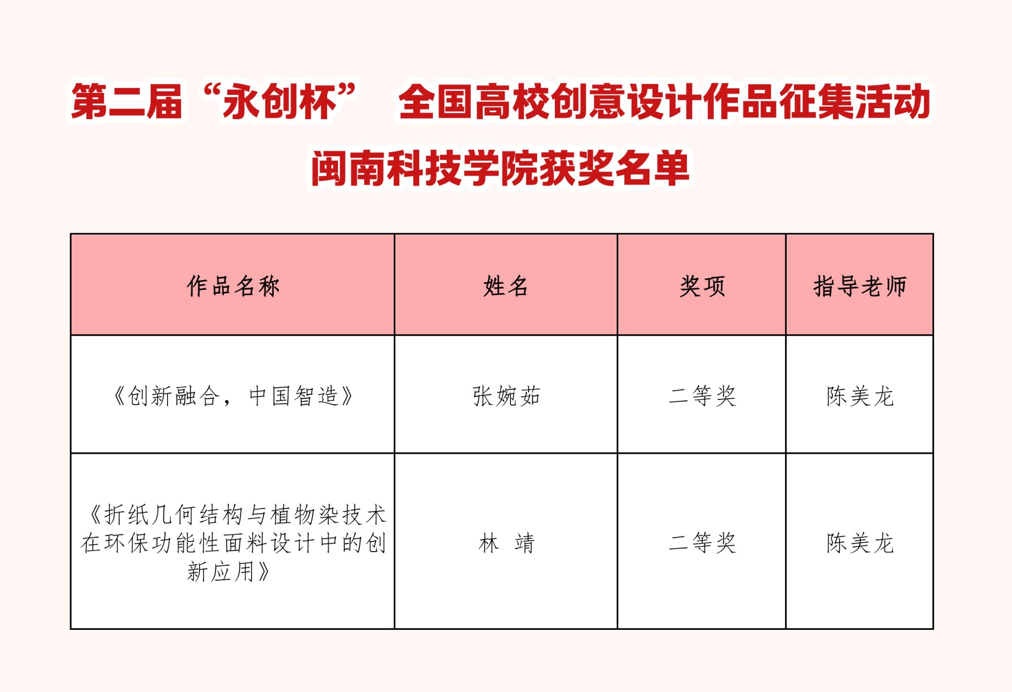 近日,第二届“永创杯”全国高校创意设计作品大赛获奖结果揭晓,我校大学生软件人才培养基地师生依托大数据与人工智能福建省高校重点实验室荣获2项二等奖,指导老师陈美龙获“优秀指导教师奖”。