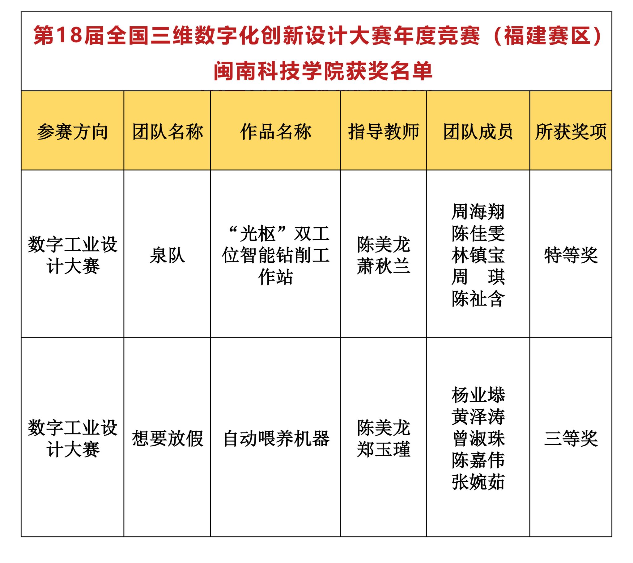 近日,2025年第18届全国三维数字化创新设计大赛年度竞赛(福建赛区)圆满落幕,我校计算机信息学院“泉队”和“想要放假”参赛队伍,经过激烈角逐,最终分别获得特等奖1项、三等奖1项的好成绩。