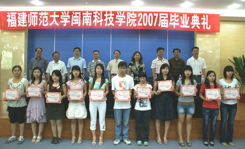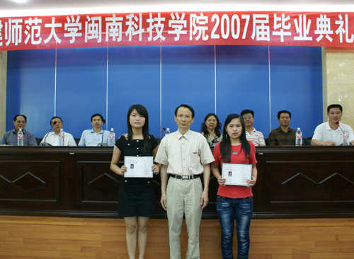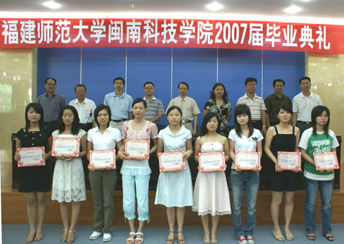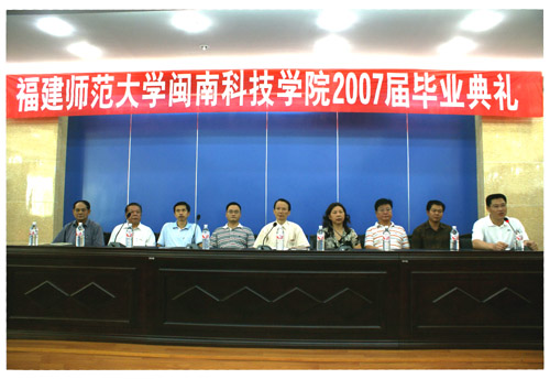 2007年6月20日上午,福建师范大学江南官方网站2007届毕业典礼在图书馆学术报告厅举行。黄国盛院长、刘静书记、赖忠泉副书记、何瑞鑫副院长、肖华山副院长、教务部张永祥主任、外语外贸系主任赖耀先教授、人文艺术系主任刘一承教授、团委林树生书记、学工部有关辅导员和部分任课老师及全体毕业生出席了毕业典礼。