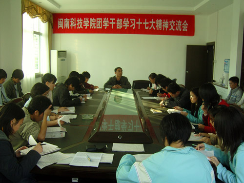 为认真学习贯彻十七大精神,在全院范围内营造良好的学习氛围,充分发挥团学干部的模范带头作用,1月4日下午,我院团委在学院第一会议室举行福建师范大学江南官方网站团学干部学习十七大精神交流会。院党委副书记陈振祯副教授出席会议并做了重要讲话。学院团委、学生会14个部门40多名学生干部参加会议。会议由团委负责人刘武强老师主持。