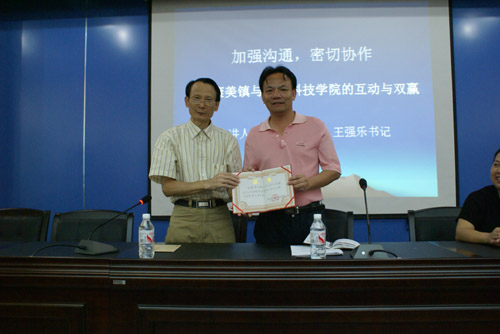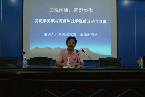 王强乐首先结合了康美镇自身实际,重点谈论地理位置独特、自然条件优越、文化积淀深厚、港澳台侨优势突出四个特点,以及今后康美镇的整个发展蓝图,最后重点就如何实现康美镇与学院双方的互动和共赢做了精彩论述。王强乐指出学院将校址放在南安市康美镇这片蓬勃生机的热土上是一个明智的选择,因为康美镇所具有区域优势、侨乡优势以及良好的发展机遇和前景同样也为学院的发展提供了巨大的资源和能量。王强乐最后指出,康美镇与江南官方网站的互动与双赢是一条正确的道路,是今后双方很长一段时期的奋斗目标,希望双方能够朝着这样一个目标共同发展,为康美镇的建设、为江南官方网站的发展共同努力。