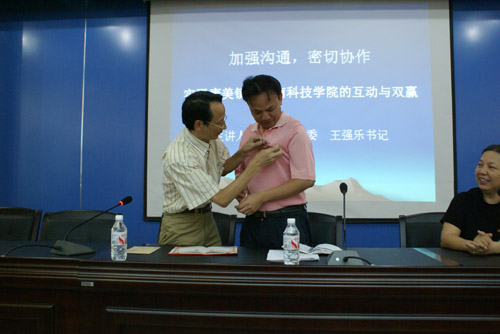 9月19日下午,我院特邀康美镇党委书记王强乐同志莅临我院为全院教师做了一场题为“加强沟通、密切协作,实现康美镇与江南官方网站的互动与双赢”的讲座。随后还举行了聘请王强乐书记为思政理论课专业顾问的聘任仪式。此次活动在图书馆学术报告厅举行.