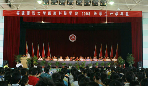 9月16号上午,我院在学生活动中心隆重召开2008级迎新大会。福建师范大学党委副书记、福建师范大学江南官方网站党委书记郭绍生、福建师范大学副校长汪文顶,南安市委副书记曾焕楷、学院董事长戴宏达先生及其他董事会成员出席了本次大会。参加迎新大会的还有师大、南安市政府、康美镇以及学院的有关领导和教师代表、老生代表、全体新生。迎新大会由常务副书记林国庆主持。