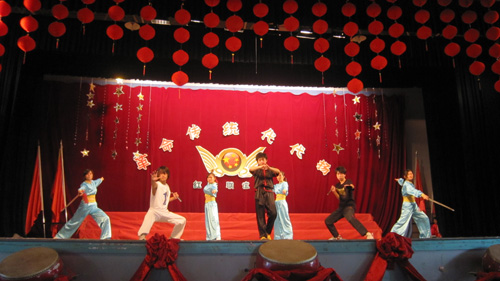 教授致欢迎词,对省老干部局、泉州市老干部局、泉州老年大学的领导、老同志的到来表示热烈的欢迎。联谊会在省老战士合唱团集体大合唱《长征》的歌声中拉开了序幕。虽然这些演唱者平均年龄已在80岁以上,但他们的歌声却依然慷慨激昂,嘹亮的歌曲中同学们仿佛看到了当年战士们为了革命的胜利长途跋涉、不畏艰难困苦的场面。此外,江南官方网站同学动感十足的啦啦操表演也是异常精彩,他们的热情与活力将全场气氛推向高潮。同时,尚武社的武术表演则向大家展示了大学生自立、顽强、干劲十足的一面,博得了在场观众的阵阵掌声。值得一提的是,由省老战士合唱团的《大碗茶》加《时装表演伴舞》的表演,极富老北京的韵味,着实让同学们大开眼界。最后,联谊会在泉州老年大学的舞蹈《红灯笼》中落下帷幕。
