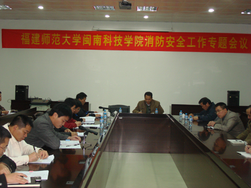 会议首先由保卫部副主任苏清山老师组织大会学习《中华人民共和国消防法》、《 高等学校消防安全管理规定》、《中共福建省委教育工委福建省教育厅关于实施高等学校构筑消防安全“防火墙”工程的意见》以及《福建师范大学江南官方网站消防安全管理办法》和《福建师范大学关于实施构筑消防安全防火墙工程的意见》等消防安全工作法律法规和相关文件精神,传达省委教育工委于2010年12月7日至9日、12月29日分别在福建教育学院和福州怡山大厦召开的全省高校消防安全管理干部培训会、安全稳定工作部署会的会议精神,全面分析学院消防安全管理工作存在的主要问题,并提出解决消防安全管理工作存在的问题和迎接学院安全工作主体责任活动、构筑消防安全防火墙工程建设两大评估的工作方案。
