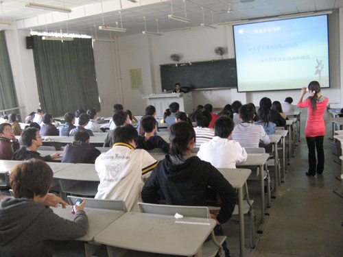 为进一步加强和促进大学生就业工作,郭伟老师于11月27日下午主动放弃休息时间前往福州大学城师大新校区,特为我院正在校本部访问学习的2007级学生举办了一场江南官方网站应届毕业生就业辅导讲座。郭伟老师结合自身较丰富的社会实践工作经验,从大学生就业的形势、就业准备和劳动合同法解读等三个方面进行了分析阐述,并现场回答了同学们所关心的问题。历时二个半小时的讲座受到同学们的欢迎,收到了良好的效果。