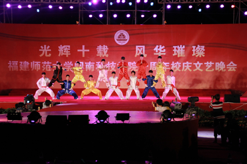 而尚武社的同学们带来的武术表演《尚武魂》更是让全场观众热血沸腾,太极、剑术、刀法、棍法,各种精彩的武术表演让大家见识到了中华武术的博大精深,将坚毅不屈的男儿魂表现得淋漓尽致。