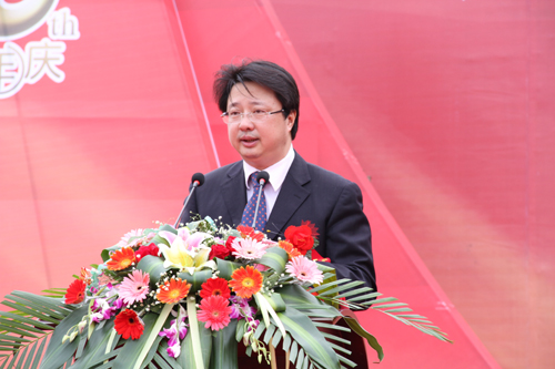 上午10时,庆典大会开始,田径场响起雄壮的中华人民共和国国歌,整个校园沉浸在庄严隆重而又热烈喜庆的气氛中。