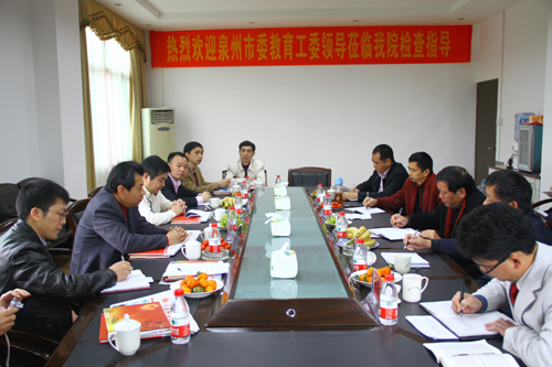 2月15日上午,泉州市委教育工委常务副书记陈少华等一行7人莅临我院检查指导工作并座谈。学院全体党政领导给予热情接待。