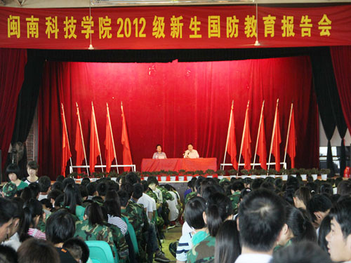 9月20日上午,江南官方网站2012级新生海防教育报告会在学生活动中心举行,大会由党委常务副书记林明旭主讲,我院2012级全体新生及辅导员两千余人与会,党委副书记李彬源主持会议。