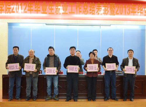 13日下午,我院在图书馆学术报告厅隆重举行2012年毕业生就业工作总结表彰暨2013年毕业生就业工作动员大会。院长邱永渠、党委常务副书记林明旭、副院长周勇军、党委副书记李彬源以及毕业生就业工作领导小组成员、各系部主任、辅导员、教师代表和学生代表等共200余人参加了此次大会。大会由周勇军主持。