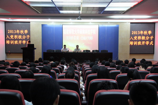10月16日下午,中共福建师范大学江南官方网站委员会分党校2013年度秋季(第二十一期)入党积极分子培训班开学式在图书馆学术报告厅举行。院党委常务副书记、分党校校长林明旭,党委副书记、分党校副校长李彬源,全体辅导员以及培训班全体学员出席了开学式。开学式由李彬源主持。