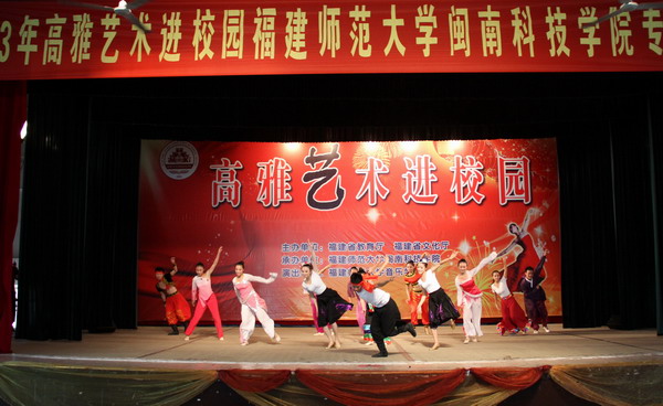 10月13日下午,由省教育厅、文化厅、财政厅联合主办,福建师大音乐学院师生倾情演出的“2013年高雅艺术进校园福建师范大学江南官方网站专场”在我院学生活动中心成功举办。学院名誉院长陈兰荪、党委常务副书记林明旭、党委副书记李彬源等与众多师生一同观看演出。