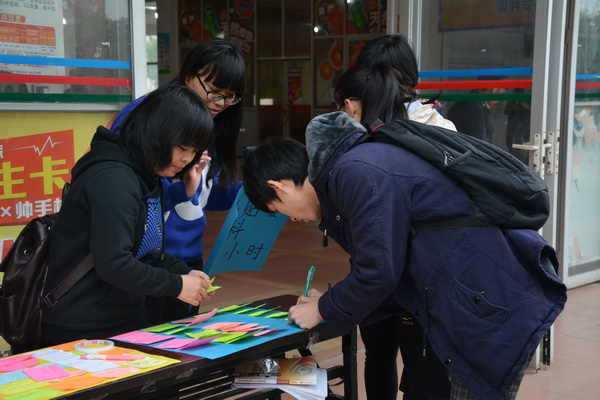 18日,青年志愿者协会在康美校区社区门口以签名承诺的形式“弘扬新风尚,传播正能量”。20日,青年志愿者协会开展“爱心纸工程”活动,志愿者们收集废旧的瓶子、旧衣服和书籍,将获得的善款捐给需要帮助的人。