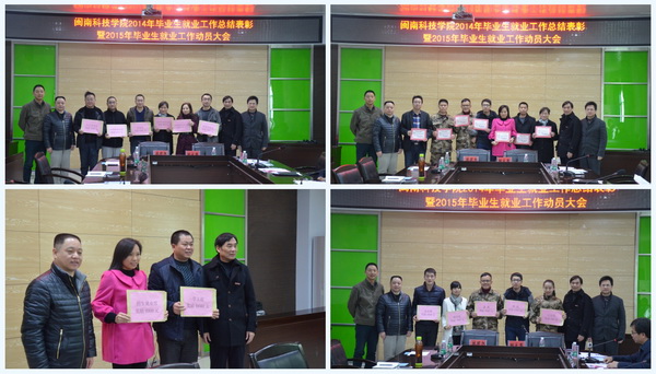 院党委常务副书记林明旭宣读了《福建师范大学江南官方网站关于表彰2014年毕业生就业工作先进集体与个人的决定》。与会领导分别为就业成绩突出的辅导员、各系部、“就业工作先进个人”和“就业工作贡献奖”等获奖单位及个人颁奖。
