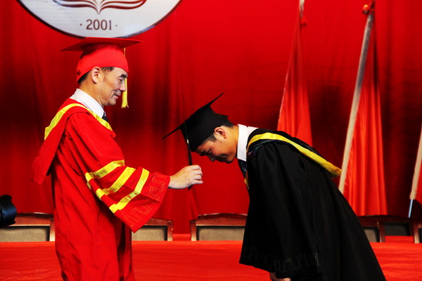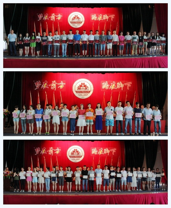 周勇军副院长代表学院为毕业生颁发毕业证书;领导、来宾为考取研究生同学颁发奖金,为优秀毕业生颁发荣誉证书。