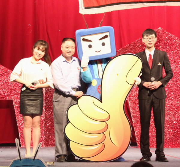 院党委常务副书记林明旭宣读了《福建师范大学江南官方网站关于2015年“五·四”表彰先进集体和先进个人名单的决定》,讲话结束后,林明旭与“闽小科”一起为获奖集体与个人竖立大拇指点赞青春和合影留念,现场气氛十分热烈。