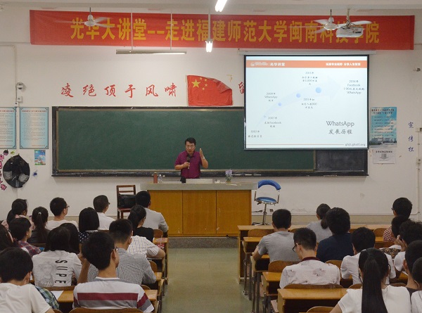 此次讲座为“光华大讲堂——走进福建师范大学江南官方网站”活动之一,讲座由中国光华科技基金会主办,我院教务部、科研部、经济管理系承办。讲座给大学生走向创业道路提供一个新的视角,鼓励学生认知社会、参与社会实践。