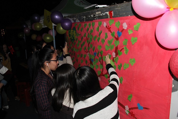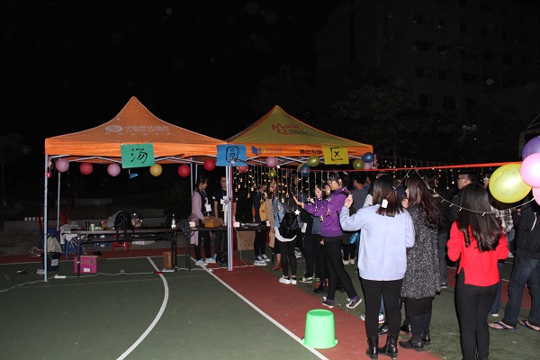 在爱心通道处,主办方为在校近千名勤工俭学的贫困生提供免费汤圆,热腾腾的汤圆暖人心扉,呈现出其乐融融的热闹景象。2013级通信工程专业的陈红同学说:“我的老家对冬至这个节日不是很重视,也没有汤圆。但是在学校,却能在节日里吃到热腾腾的汤圆,在寒夜给我们带来满满的正能量,真切地体会到了家的温馨和关切。”