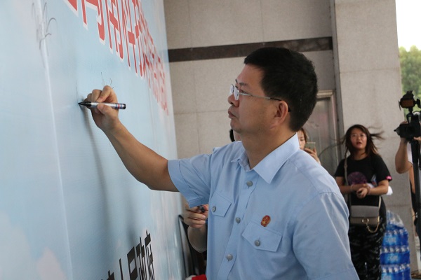 6月26日下午,由南安市禁毒委、康美镇人民政府主办的“6▪26国际禁毒日暨南安市禁毒宣传千里行——走进江南官方网站”系列活动在我院举行。南安市副市长薛建明,泉州市公安局党委委员、南安市公安局局长庄文斌,泉州市公安局副调研员周和平,南安市公安局副局长黄东阳,学院副院长周勇军参加了启动仪式。