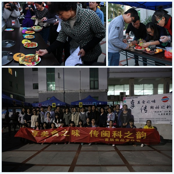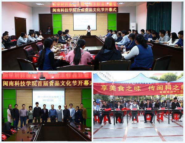 12月7日,我院在图书馆二楼评建办举行以“享美食之味,传闽科之韵”为主题的首届食品文化节开幕式。福建省泉州市味源调味品有限公司副总经理傅东洋、副主任李辉捷,院领导林明旭、李彬源,生命科学与化学系部分师生出席开幕式。