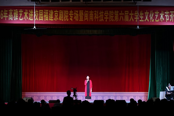 2016年高雅艺术进校园——福建京剧院专场展演在我院成功举办,让广大师生了解国粹京剧的表演艺术,进一步助推师生良好的审美情趣和艺术素养的培养;在领略国粹艺术独特魅力的同时,也促进了青年学生对优秀传统文化的传承和弘扬。