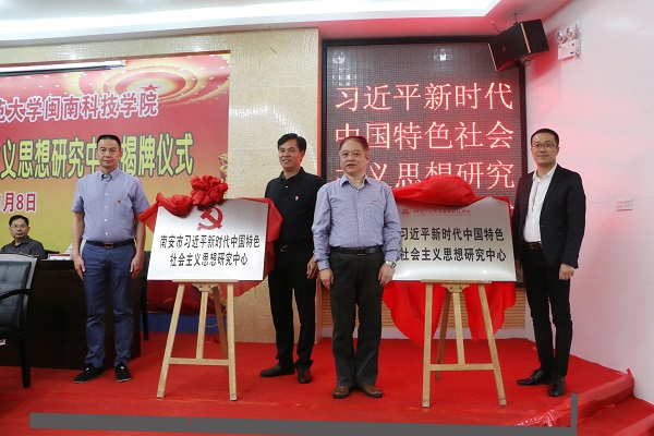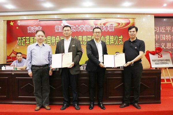 李方祥、吴忠溪、卓庆哲、林明旭分别为“南安市习近平新时代中国特色社会主义思想研究中心”和同时成立的“福建师范大学江南官方网站习近平新时代中国特色社会主义思想研究中心”揭牌。